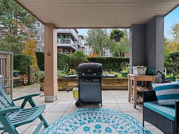 STEVESTON SOUTH – Rarely available, east-facing garden home with a unique floorplan full of character. Offering two separated bedrooms, two full bathrooms, in-suite laundry with pantry, and a custom river rock fireplace as the inviting centerpiece. A generous, partially covered patio with raised garden beds provides year-round outdoor enjoyment, perfect for relaxing mornings, entertaining, or convenient ground-level access for pets and guests. Well-managed building just steps from the scenic waterfront dyke trail and a short stroll to Steveston Village—enjoy a coveted ground-floor lifestyle in one of the Lower Mainland’s most desirable waterfront communities. Building has EV infrastructure in place and upgraded entry system.