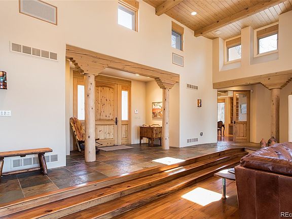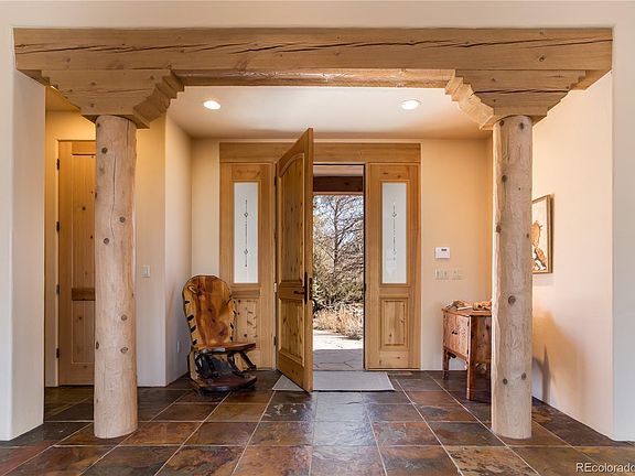 *Dramatic Architectural Custom Masterpiece by Renowned Architect, Sears Barrett - Built on Extra Deep Caissons Down to Bedrock! *One of-a-kind Estate Offering a Tranquil Colorado Lifestyle on over 2 Treed Acres with Spectacular Grounds and Panoramic Mountain and Valley Views *Welcoming Entry opens to Great Room with Wall of Windows to Scenic Views, Old Reclaimed Wood Floor, 16' Wood Beam and Plank Ceilings, Fireplace and Glass Doors Leading to Amazing Peaceful Outdoor Living Spaces *Spectacular, Private Main Floor Master Suite features Picturesque Views of Grounds and Mountains, Saltillo Tile Floors, Sitting Area, Built-Ins, Direct Access to Serene Outdoor Spaces, Bath with Imported Slate Tile, Large His & Her Closets plus more. . . *Private South Wing Main Floor Office, Directly off Entry, Includes Vaulted Wood Beam Ceiling, Custom Built-Ins and Nature's Views *Kitchen with Large Island, Breakfast Nook, Hearth Room, Pantry and Access to Patio *Circular Staircase leads to Upper Level Loft and Private North Wing 3 Bedrooms each with Baths, Balconies and Amazing Views *Finished Lower Level features Rec Rm with Built-Ins, Kitchenette, Bdrm/Craft/Exercise/Work Room, Bath and Lots of Storage Areas *Stucco Clad Walls were made for Art Lovers; Custom features include Hand-Peeled Vegas, Latillas, Planked Ceilings, Custom Wood Beams, Custom Solid Wood Doors and Hardware Throughout; Imported Spanish Saltillo Tile and Slate Flooring; Old Reclaimed Wood Flooring, Double Pane Pella Windows; Built-Ins Throughout; Spanish Tile Roof; Professional Landscaping & Lighting; Custom Trellises plus so much more! Must see this beautiful work of art!