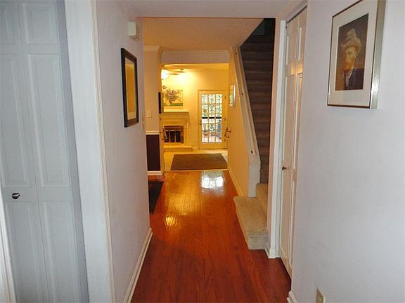 Don't miss this 2-story end unit w/ 2 car garage! Covered front entry leads into charming home w/hardwood floors, updated kitchen, renovated bathrooms, formal dining room & bright living room overlooking a private patio & deck. Home boasts 2 BRs & 2.5 BAs. Newer A/C, carpet & paint. This home has a great amount of storage & is move in ready w/ refrigerator & washer/dryer remaining! Nice quiet complex w/ a swimming pool - Far enough from 285 to be quiet, but close enough to enjoy all of the conveniences of the location! Tenant occupied - pictures from previous listing.