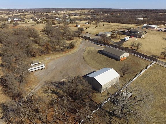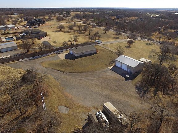 OFFICE/HOME & SHOP CLOSE TO TOWN...A Unique 2.5 acre mol property just a few mins East of I35! 36x56 Metal building (NO HOA)construction is wood frame on slab with metal siding and composition roof--Pole Barn look with conventional construction, central Electric HVAC. Currently used as office featuring 4 rooms which could be converted to bedrooms, 3 of which are OMMA Certified; Seller will uninstall equipment (new & never used) and/or leave with the property at no additional cost to Buyer, small kitchen and full bath, living area with Excellent security system & cameras to remain with the property. Large 36x48x14 insulated SHOP suitable for some RV's, 2 bays, 12ft overhead doors, LED Lighting with reinforced concrete drive, gas heating equipment installed-not currently connected to gas supply; Spray foam insulation. Additional storage in the semi trailer and storage shed to remain with property.