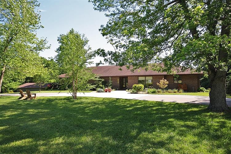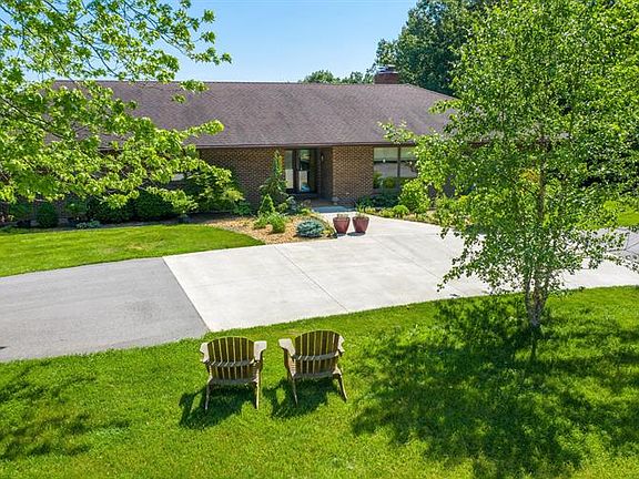 Custom, all brick ranch home sitting on nearly 5 acres. Large windows overlooking the peaceful lot. With vaulted ceilings in the living room, open floor plan with fireplaces in LR and FR downstairs. A cook's kitchen with large island, double ovens, cooktop grill, walk-in pantry with wine cooler, plenty of pull-out drawers and customized storage with access to the large deck from the breakfast room. 3 large bedrooms with walk-in closets on the main level. Plus expansive laundry room w counter space, full size sink and storage. Home has many updates, including new flooring and appliances, central vac, custom built-ins. Both upper and lower driveways replaced renovated in 2018. Downstairs includes FR, bedroom, non-conforming bedroom, full bath, safe room and wine cellar. Energy efficient upgrades.
