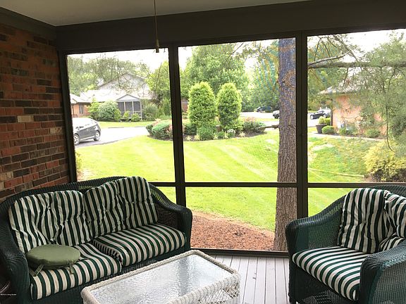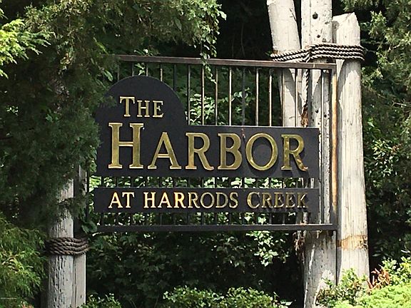 Unique 1900 sq. ft. ranch style condo in the Harbor at Harrods Creek with finished basement and attached 2-car garage. 3 bedrooms on 1st floor, with 2 additional rooms in basement set up as bedrooms plus a large family room with wet bar. House features wide plank oak floors in the living room and dining room, vaulted ceiling, wood burning fireplace, screened porch, large 2 level deck with hot tub overlooking green space and Harrods Creek. There is a sauna in the basement. The condominium features a clubhouse, pool, lake and marina. The custom built entertainment center and dining room china cabinet do not remain, also the refrigerator in the garage does not remain.