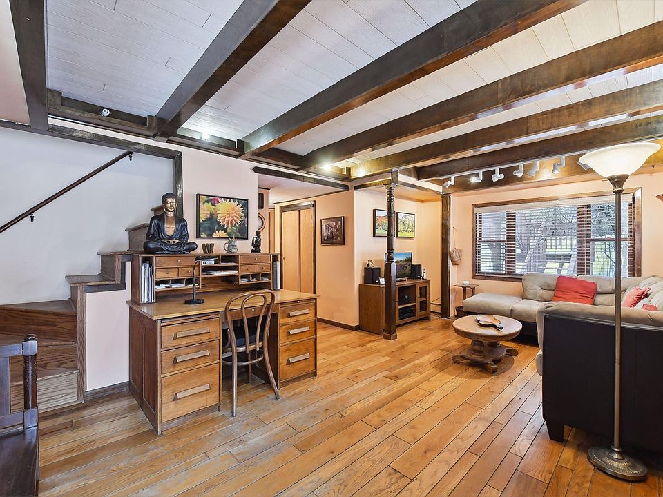 Art and craft style home offers a rustic feel on a private, quiet, peaceful lot that is for a nature lover to appreciate. This Dutch Colonial home features three bedrooms on the upper level, main floor living room, a 2nd family room, a three season porch with baseboard heating, views of nature all on a serene setting with wildlife, privacy and walking distance to the park. Two storage areas are located off the front door area. Two car detached garage was built approximately 3-4 years ago. Other improvements include front paver walkway and railing. Roof is approximately 6 years old. This home is ready for your vision to renovate and update to make it your special home.