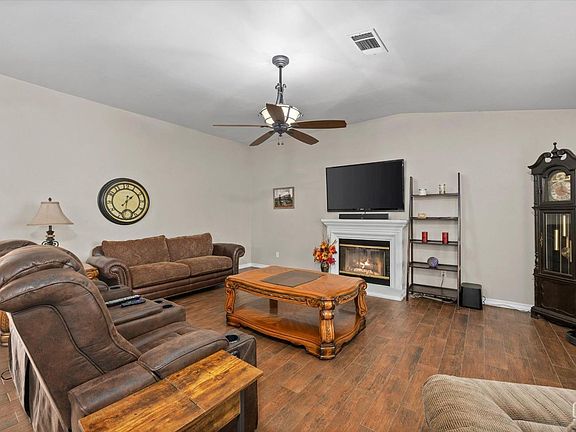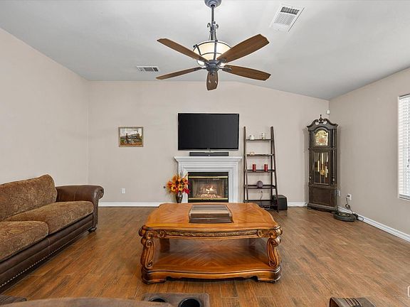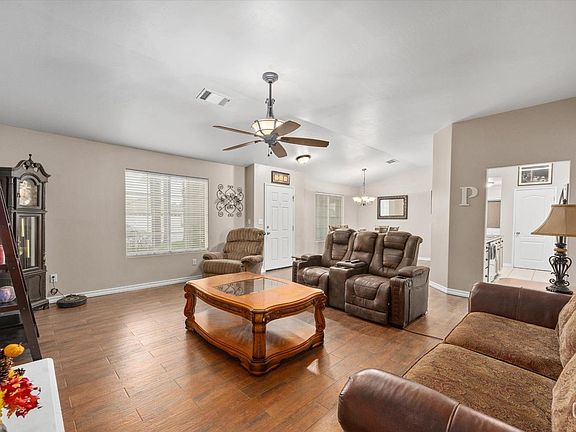 Northwest Crystal Ranch home with RV parking on corner lot across from Almondale park. 3 bedrooms 2 bath with large backyard and spacious covered patio. Beautiful wood look tile floors, updated kitchen, and open Livingroom with decorative fireplace are just a few of the amenities of this amazing home. Wrought iron RV gate with pull up post so you can pull through along with 220 and clean out. 220 also on patio, garage, and laundry room. Block wall fencing on back of property.
