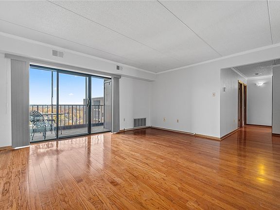 Easy, maintenance-free living in Imperial House - Pittsburgh's premier condominium building, located in the heart of Squirrel Hill. This top-floor two bedroom unit wows with sweeping views of our neighborhood's fall foliage from its private screened-in balcony. Inside, your new home is perfectly appointed, with shining hardwood floors adorning the expansive living & dining area; woodgrain kitchen with matching appliances; master suite with full closet-lined corridor to en-suite bath with tub. Second bedroom has built-in custom closets; hall bath with step-in shower. Same-floor laundry and storage! Quiet & meticulously maintained secure building, offering a multitude of amenities for residents' convenience, including pool, hot tub, fitness room, party room, overnight guest suite, storage area, & garage parking! Mere moments from all of Squirrel Hill's famous restaurants & shops, as well as grocery store & public transportation, parks & trails; minutes from Oakland & Downtown Pittsburgh.