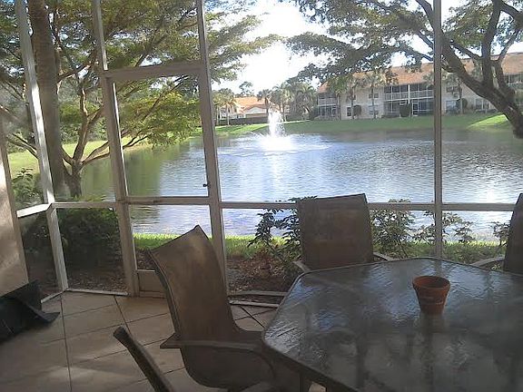 PRICE REDUCED on this spacious coach home with 2 bedrooms and large den (or 3rd bedroom) has tranquil lake and fountain views with a desirable southern exposure. The lanai has upgraded diagonal tile. Kitchen upgrades include Corian counter tops, cabinet doors, lighting and newer refrigerator, microwave and washer. For protection and security the property has lockable accordion shutters on all windows except the lanai which has a full width electric shutter. There is also a second tiled lanai off of the den. Large master bedroom has generous walk-in closet. This home is light and bright and has lots of storage space and a one car attached garage as well. Located directly across from one of the community pools. Carlton Lakes is a great community with a pools overlooking lakes, an active clubhouse, Har-Tru tennis courts, bocce courts and more. Located close to beaches, schools and all of the best dining, shopping and entertainment options Naples has to offer.