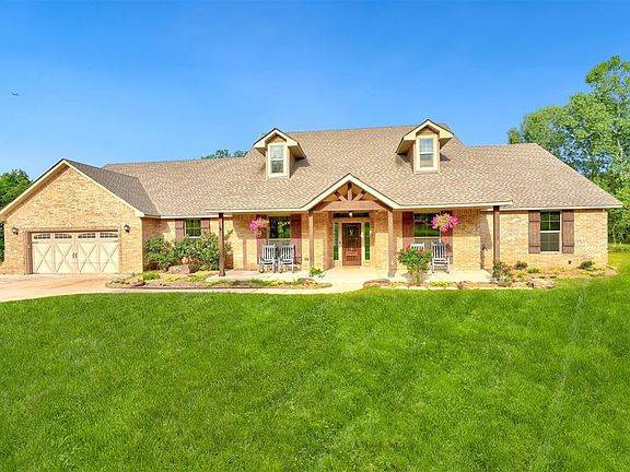 Welcome to Paradise! Nestled on 5 glorious acres, this property provides peaceful country living in the city. This showstopper literally has the most incredible layout graced with 5 bedrooms 3 baths and truly an entertainer's dream. Open concept w/large living room, stone fireplace w/custom knotty alder woodwork & cabinetry throughout. Gourmet kitchen features a massive island w/veggie sink & a built-in ice maker, stainless steel appliances, pot filler, granite counters, & pantry. The owner suite has a walk-in shower & separate tub, dual sinks & a vanity. Also blessed with radiant heated floors in the master bath and laundry room. The 2nd primary suite is on the opposite side of the home. YES! a second primary suite!!! Walk in attic can easily be finished out to create additional media/playroom space; it has 1,000 square feet & is plumbed for a bathroom. Jam-packed with upgrades including spray foam insulation, full house generator, water softener, toe kick lights, LED lighting, & is wired for surround sound/switch volume controls. Covered Patio is plumbed for an outdoor kitchen. The generator has just been serviced. The google nest system that includes the doorbell, front of home camera and smoke detectors throughout. The extra walk in attic space that's ready for any addition including bathroom plumbing. The outdoor buildings that have electricity to both. Carpet replaced throughout. Location is incredible, easy to get anywhere in the city. Buyer to verify all information.