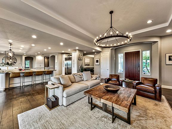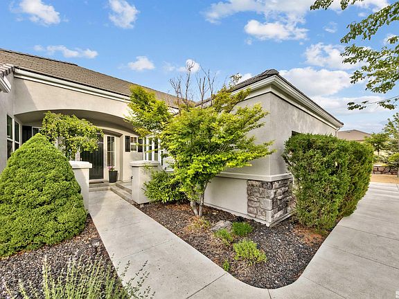Within the gates of the coveted ArrowCreek neighborhood awaits your dream home! Impeccably designed for entertaining, over 3000 square feet on the main level provides spacious open-concept living, along with a separate formal dining room, executive office, master suite, and two additional bedrooms on the opposite side of the house from the master suite area. Throughout the home, you have breathtaking mountain views along with the glimmering lights from the city’s valley at night., The living room features a 12’ wall of windows with (oxxo) sliding doors that showcase this gorgeous view and opens to a large patio offering an expansive outdoor living and dining area. A chef's dream, the remodeled gourmet kitchen boasts a built-in 48” Sub Zero refrigerator, a professional-grade 48” Wolf range, quartzite countertops, an oversized island with bar seating, separate wine and beverage refrigerator, coffee station, and a breakfast/family dining nook. The main-level spacious master suite features spectacular views, a spa-like bathroom, generous walk-in closet, and direct balcony access from the master sitting area. The office is nearby the master suite, and is inviting yet private with tall glass French double doors. With the mudroom and laundry off the garage also on this level, you can enjoy everything gracious main-level living offers. In addition to the impeccable main level, you have an ample daylight lower level with 9’ ceilings throughout. It includes 2000 square feet of additional space, with a large bedroom that has a sizable walk-in closet and bathroom. This level features a large family room with a fireplace. There is a separate extra large and finished bonus area / flex room, currently used as a workout space, and can be converted into two additional bedrooms and bathroom with initial plans already drafted, making it easy to update and take to the next steps for permitting if desired. The beautiful backyard overlooks the mountains and twinkling lights from the city’s valley at night, and offers a level grass lawn, a circular lookout point with pavers to accommodate Adirondacks and a fire pit, and has a serene small pond with a soothing waterfall feature. Backyard also has BBQ and hot tub hookup. This exquisitely crafted and gracious home is perfectly situated for enjoying all that the ArrowCreek neighborhood with its robust amenities, South Reno, and nearby Lake Tahoe (Incline Village is <25 miles away) have to offer. Here, sweet living with relaxation, connection with friends and loved ones, and the beautiful outdoors, awaits.