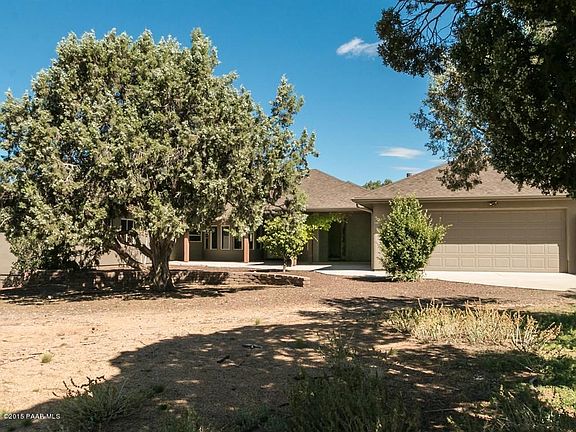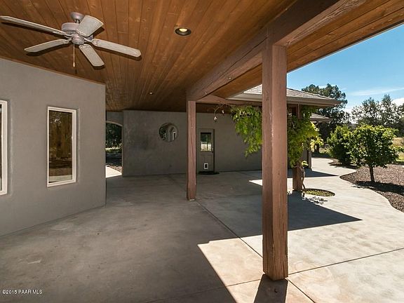 Western skies and Granite Mountain Views from this 8 acre mini-ranch. Single level living and many upgrades in the kitchen as well as the rest of the home. Kitchen has great bar area for entertaining family and guest or just enjoying quiet time. Tons of storage space and dining room with windows for taking in the scenery. Large master bedroom with walk-in closet, master bath with separate tub and shower AND its own FIREPLACE! Other bedrooms are large with spacious closets and light and bright feel. Entertain on your covered patio with tongue and groove ceiling detail. Time to enjoy the outdoors! Bring the horses and toys and make this yours! In addition it has 1100 square feet of amazing garage / workshop on the lower level not included in square footage.