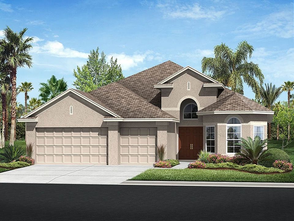 The Arlington offers homeowners 2,482 square feet, with four bedrooms, three bathrooms and a three-car garage. This one-story home provides an open-concept floor plan. Enter through the front porch into the foyer and spot the den on your left. Moving into the living, dining and family rooms, you will pass the utility room and three bedrooms on the left of the house. Coming into the center of the house, you will enter the kitchen containing Whirlpool appliances, recessed lighting, Moen faucets and a deluxe waste disposal. Adjacent to the kitchen is the breakfast nook and covered lanai that leads outside. Enter back into the house and pass through the family room to enter the owner's suite with a large walk-in closet and owner's bath with a luxurious garden bathtub, his-and-hers vanities, Moen faucets and elongated toilet. You can opt for mitered glass looking out to the lanai from the breakfast nook, a pantry in the kitchen, an alternate shower in one of the baths, cabinets in the utility room, a window in one of the baths and stairs to a bonus room.