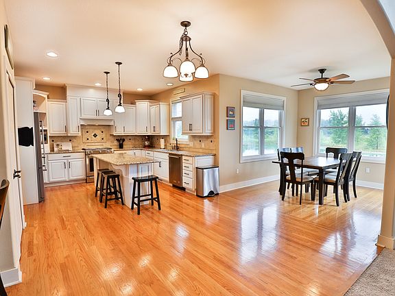 Stunning water views all year long! Plenty of room for all w/5 bedrooms & open floor plan. Stunning kitchen w/center island, tile backksplash, gas cooktop, stainless steel appliances & large pantry. Dine in the casual eating area/sunroom overlooking the peaceful lake views. Gorgeous floor to ceiling stone fireplace in large great room. Luxurious master suite with tile shower and huge walk in.