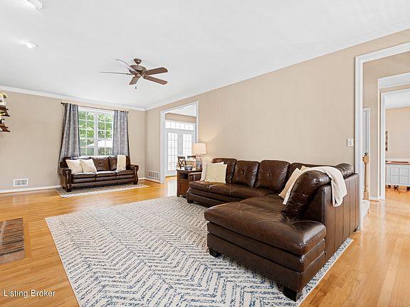 This beautiful two-story home in Crestwood, KY, offers over 3,000 sq ft. of living space with 4 bedrooms, 3.5 bathrooms, and is located in a quiet cul-de-sac within the sought-after Oldham County school district. The inviting front porch, and well maintained landscaping, sets the tone for the warmth and elegance you'll find inside.