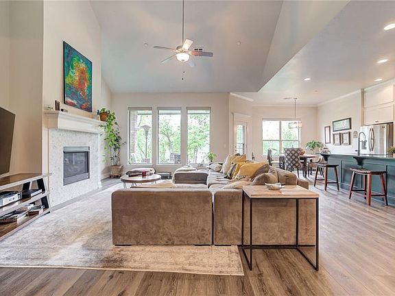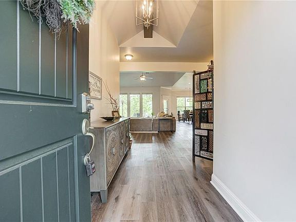 Welcome to this house with a beautifully vaulted space that enters into an open concept dining, kitchen, living room space, with 10 ft tall ceilings that make the home feel grand. The expansive window space along the living room wall allows for plenty of natural lighting and scenic wooded view of the back yard. The kitchen features beautiful cabinetry to the ceiling, granite countertops, large kitchen island with seating, and under cabinet lighting. The hallway leads the way to the primary suite located on the opposite side of the home from the secondary bedrooms. Additional highlights include a spacious laundry room and separate mud room with mud bench. There is a recreation facility and pool in the community for your enjoyment. Home sits on a large lot of 3/4 of an acre.
