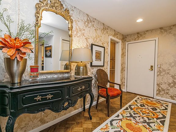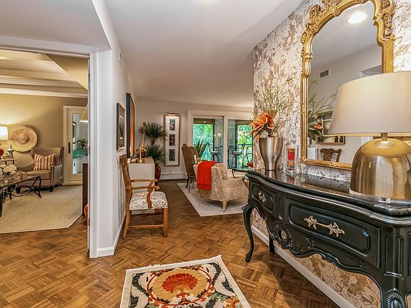 Sophisticated & Stylish 2 bedroom 2 bath residence with a lovely jewel box interior featuring high-end finishes throughout. From its gorgeous parquet floors, enameled woodwork, custom gourmet kitchen & baths, this unit offers high levels of comfort. The current owner has taken great pride in ownership which shows from room to room. Upon entering this welcoming unit you are immediately greeted by the warm neutral color pallet and abundance of natural light coming through your newly installed Marvin Doors and Anderson Windows. Your spacious enclosed private terrace features gleaming terra cotta flooring, custom blinds & west facing views of the patio & pond. The chef's kitchen with its new stainless appliances, quartz counters, & custom cabinetry are an entertainers dream. The Primary suite features multiple closets with custom organizers & an ensuite with custom dual vanity. The second bedroom is currently used as a den/office & also has access to the terrace. Enjoy!