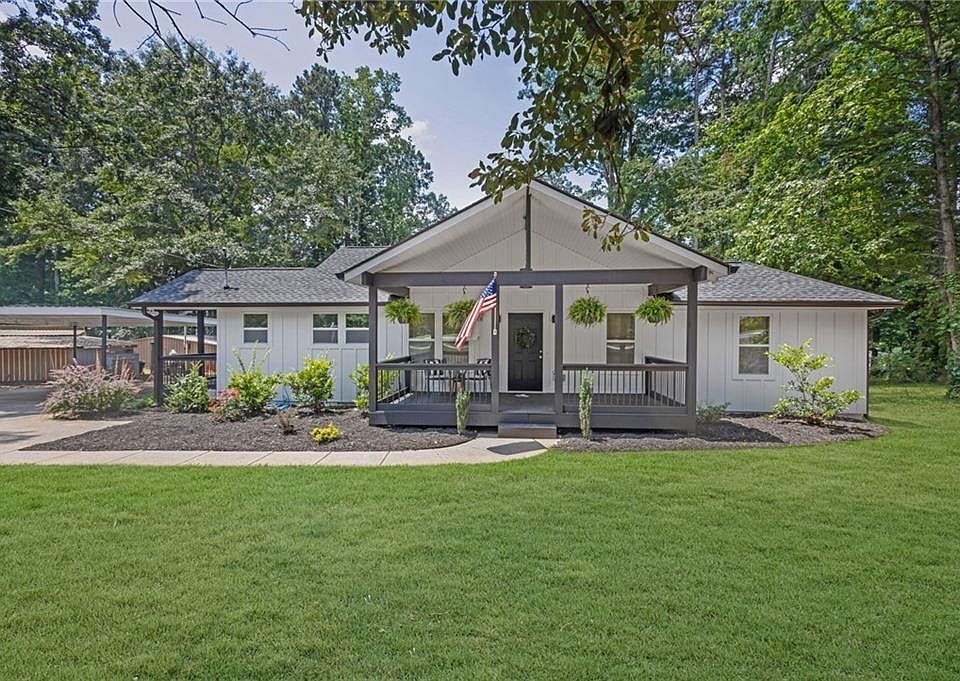 Available now! Positioned on a large half acre lot featuring numerous WOW improvements with meticulously chosen finishes and fixtures throughout, this beautifully renovated ranch is move-in ready. Large rocking chair front porch w/ vaulted ceiling, open-concept floor plan w/ spacious living, dining, kitchen w/ breakfast bar, new quartz countertops, new farmhouse sink, new cabinets, new white oak flooring throughout, laundry room w/ W/D hookups, king-size master bedroom w/ en suite full bath w/ shower/tub combo, two additional queen-size bedrooms, hallway full bath w/ shower/tub combo, covered side porch, huge partially fenced level backyard and two-car carport. Garbage and pest control included. Conveniently located to schools, dining, shopping and more. Price and/or availability date may change without notice. Rate advertised is for on-time payment. One-time non-refundable move-in fee due prior to lease commencement. Application fee is non-refundable $65 per adult over 18 years of age. Pets accepted on a case-by-case basis. Lease term is a minimum of 12 months. The management company processes all paperwork.