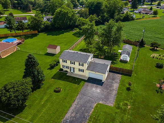 Beautiful two story home on nearly 1/2 acre lot. The home has a large country kitchen with updated cabinets, stainless steel appliances and a large living room with a sliding door to covered back patio. The home has solid six panel doors. Both full baths have updates. The full basement is finished with over 500 sq. ft. of living space. The laundry room is huge with lots of storage space. The oversized attached garage is extra deep, drywalled, overhead lighting and has a nice workbench that remains. Just off the garage you'll find a huge 3 season room that leads to the enormous privacy fenced rear yard. The property has two large storage sheds with electric and a deck in between. A well built firepit, a huge garden and extra parking for a camper or boat completes this amazing property.