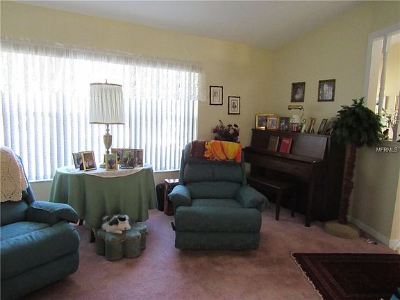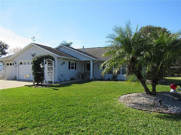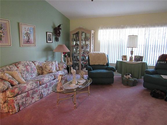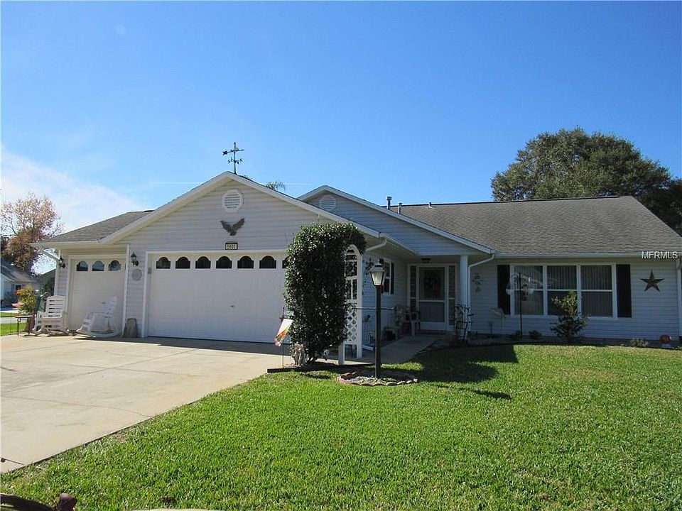 THREE CAR GARAGE!! Come see this nice home on a corner lot and quiet cul-de-sac. Step into the foyer and see the big living room with a vaulted ceiling and picture window. The dining room is adjoining. All rooms except the living room are hard surface for easy care. Kitchen features lots of pretty, newer wood cabinets with soft close doors and nice big drawers, pantry, and bar area into the family room. From the family room and lanai, you have lovely views of the lake. The lanai has nice double-paned glass windows on 2 sides. Bedroom 2 is conveniently located across from the hall bath. You'll really love the master suite. The bedroom is large and has a walk-in closet. HUGE describes the master bath. It includes a step-in shower, linen closet, vanity, commode area, jacuzzi tub beneath beautiful stained glass windows and a big walk-in closet. You have a convenient office space with a built-in desk and lots of cabinets and counter space in the laundry room. The garage has several built-ins and shelving. Heating and cooling 2013. Roof 2005. The community is friendly, gated and financially sound. Features include indoor and outdoor pools, tennis and pickleball. Other sports offered are bocce, shuffleboard, horseshoes, softball, billiards. The clubhouse has an arena for walking, bingo, and special concerts and events. There's a fitness room, library and craft room. Free boat and RV storage and a wonderful craftsman shop. Location is convenient to shopping, restaurants, banks, major highways and attractions.