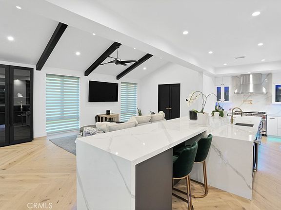 Experience luxury, elegance, and refinement. This trophy generational property is steps away from the exclusive, private Yorba Linda Country Club which redefines the golf experience and upscale living, located on a serene street where each custom home tells its own unique story, notably ranked #3 for the safest city in all of California, as published by Safewise. This single story, custom, modern masterpiece has undergone a transformative, meticulous remodeling down to the very last inch that's just 1 1/2 years old showcasing the exteriors finish of pristine smooth white stucco, soffit lighting that accentuates the brick-patterned facade, hinting at the modern jewel. Immerse yourself as you are welcomed through a majestic 8 1/2 ft glass door by Weston, soaring 16 ft cathedral ceilings that add a sense of grandeur, elegant modern remote controlled shades, and expansive Andersen windows set on matte smooth drywall surrounding the entire home inviting an abundant of natural light. Enjoy the beauty of bespoke finishes and fixtures such as exquisite vintage white oak wood floor, premium Newport Brass fixtures, custom black solid wood elements, captivating architectural features such as the use of beautiful porcelain slab patterns throughout the home. The dining area, with its warm inviting electric fireplace and 16 ft black slab from floor to ceiling, is a masterpiece of design complemented by 12 ft black modern beams and a stunning bifold 9 ft LaCantina doors, blending indoor and outdoor living seamlessly. In the kitchen, a chef's dream, with a luxurious 20 ft porcelain island wrapped around in LED lighting, porcelain slab backsplash, LED-lit cabinets, and top of the line appliances from Wolf and Sub-Zero. Custom solid double doors open into the primary suite, where a triple-ring chandelier and refined accent lighting set the stage for elegance. The en suite spa inspired bathroom, adorned with porcelain slab walls, brass hardware, a sleek quarter inch glass shower, boasts a standalone tub perfect for unwinding, accompanied by a LED-lit walk-in closet seamlessly integrating with the home's cohesive theme. An eye-catching frameless double glass Hintex garage door with poxy floor opens to an expansive RV parking, ensures that your guests will be welcomed with the utmost convenience and style. Near the famed Richard Nixon Presidential Library & Museum/Yorba Linda Towne Center, this rare gem is a once in a lifetime opportunity to be offered for sale in Yorba Linda.