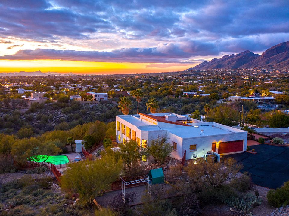 Located on a 1 acre lot in the highly sought after Skyline Bel Air Estates sits this beautiful 4 bedroom 4 bathroom home with sweeping unobstructed views in every direction. This home is perfectly situated at the end of a cul de sac and offers a 500 square foot enclosed heated and cooled Arizona room. Beyond the homes courtyard entry, one can gaze out at the unobstructed views of the Catalina mountains. Upon entry, youll find updated bathrooms, beautifully exposed beams and a gorgeously renovated kitchen that opens up to the sophisticated great room. Access the covered balcony from both the master bedroom and also the great room that extends the length of the home showcasing sweeping mountain and city views. Great Family home, or Air B&B. Walking distance to Sunrise Elementary School Downstairs, find 2 more generously sized bedrooms, an updated bathroom, space for a large office and two large living areas situated perfectly for family entertainment.