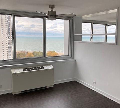 Large, sun filled 2 bedroom 2 bathroom apartment located on Sheridan Drive & Bryn Mawr with a 20 foot exterior deck and all expenses (utilities, basic cable and internet) included. Contemporary elevator building with just 5 units on each floor. Fantastic end unit has large living area, great sized bedrooms, and gorgeous views of the city and Lake Michigan. Newly rehabbed bathrooms, new flooring, Kitchen appliances are 5 years old. Master bedroom has en-suite bathroom and new custom closet. Building features laundry, on-site engineer, bike storage, attractive common areas, and a large sundeck. 12 month lease, move in fee, no cats or dogs over 40 lbs. Parking is available for an additional 140/mo.