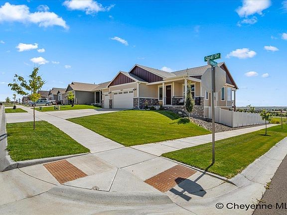 Welcome to 5601 Opal Dr, a dazzling 3-bedroom, 2-bathroom retreat in the desirable Whitney Ranch subdivision of Cheyenne. Bathed in natural light, this 2021-built beauty spans 2,820 sqft, showcasing an open-concept design with soaring 9-foot ceilings. The gourmet kitchen is a chef’s dream, featuring sleek quartz countertops and a gas range, while the luxurious master suite offers the convenience of main-floor laundry. Cat5 and cable plugs in the office, perfect for all your work-from-home and gaming needs. Step outside to a covered composite deck, perfect for entertaining, and enjoy the convenience of a spacious 3-car attached garage. Don’t miss your chance to own this modern masterpiece in a prime location!