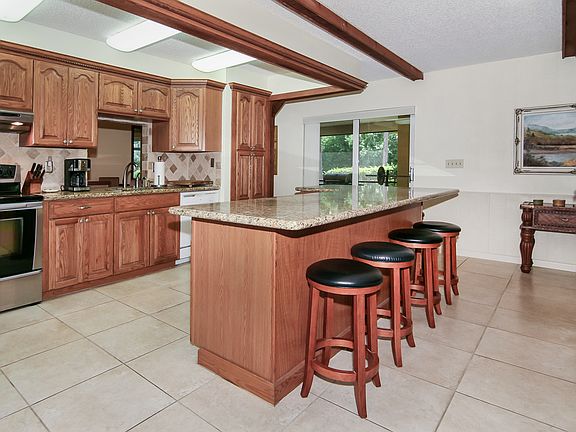 Charming 4-bedroom 2-bathroom single family home on 1.25 acres in sought after Country Acres Estates! Updated kitchen w/granite counter top, wood cabinets, tile back splash, eat-in kitchen and open to the spacious family room. Family room has real wood burning stone fire place and a wet-bar! Huge formal living room w/ separate formal dining that has a pass through to the kitchen! Large master bedroom w/ carpet, separate vanity area, walk in closet & huge master bath. Impact windows! 3YR A/C. A+ schools!