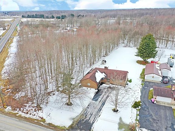 Welcome home to this gorgeous, brick faced ranch located on an expansive Cortland lot! The sprawling home contains tons of custom craftsmanship with unique stone and woodwork throughout the residence. Making your way through the tiled foyer, you'll immediately notice the highly styled family room with its pass-through fireplace and cobblestone accent wall. Built-In cabinetry leads into the robust kitchen, as the galley layout showcases its natural wood cabinetry and piano black appliances. Nearby, a relaxing finished sunroom offers rear patio access while a half bath is combined with first-floor laundry services. Back inside, a delightful area overlooks the carpeted sunken living room where a massive, brick mantle encapsulates the fireplace. Down the main hall, A lavish full bath provides its oversized footprint before spilling into the three spacious bedrooms. The master bedroom completes the package with its own full personal bath. Downstairs, a full waterproofed basement makes storage or rec space a breeze. Home warranty provided.