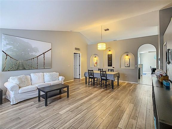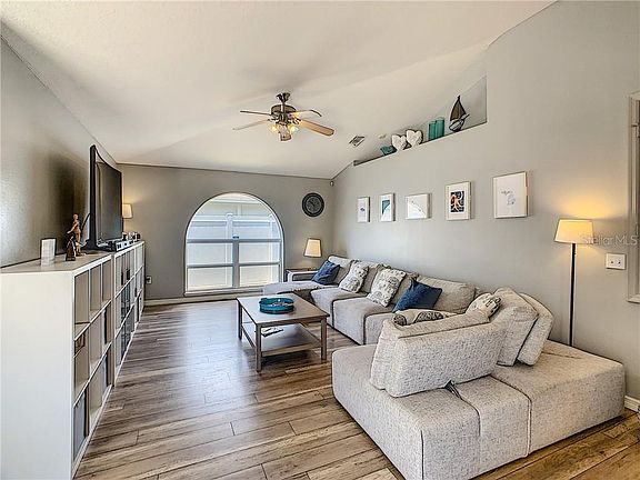 Welcome home to this beautiful 4-bedroom, 2-bath fully fenced home with 2,148 sq. ft. and SOLAR in the beautiful community of Royal Hills! This amazing home has so much to offer! Stepping through the front door, you will be greeted by an extra large, open family room and dining room with high ceilings and lots of natural light that flows into an additional second spacious open living room with plenty of room for gathering and entertaining (or social distancing). The kitchen features a large island, two pantries, two kitchen sinks, newer stainless steel appliances, ample cabinet and counter space for all of your gadgets, and an adjacent dining nook with sliding doors to the backyard. Unwind in the master suite, which offers a spacious bedroom and adjoining bath with a double closets and garden tub with separate walk-in shower. This split bedroom floor plan creates maximum privacy with the remaining three bedrooms to the rear of the home. There's no carpet in this home so maintenance is a breeze and leaves even more time to enjoy the amazing backyard complete with above ground heated pool, freshly painted wood deck, custom koi pond, storage shed and plenty of places to escape the sun yet enjoy the warm Florida breeze. Seller is in the process of professionally installing a covered, screened in patio with insulated roof off of the kitchen. This is a full smart home, Alexa compatible with Nest thermostat, Ring doorbell, and Wifi Garage opener. New Roof (2018), AC Unit (2016). Imagine having all of this and saving money on your electric bill...With solar the seller's average monthly electric bill is only $30! It does not get any better than this!