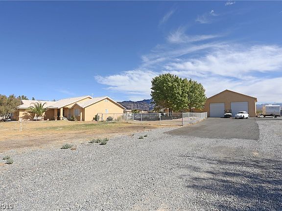3BR 2BA, split floor plan on over 4 acres! Detached GUEST HOUSE has 2BR as well as full kitchen. Heated inground pool/spa. Double bay, drive through 40X40 garage. Beautiful self sustaining pond in front yard. Tile through out with carpet in bedrooms. Granite counters in kitchen with stainless steel appliances included. Plantation shutters throughout. South end location with no neighbors behind to obstruct the magnificent view of Mt. Charleston!
