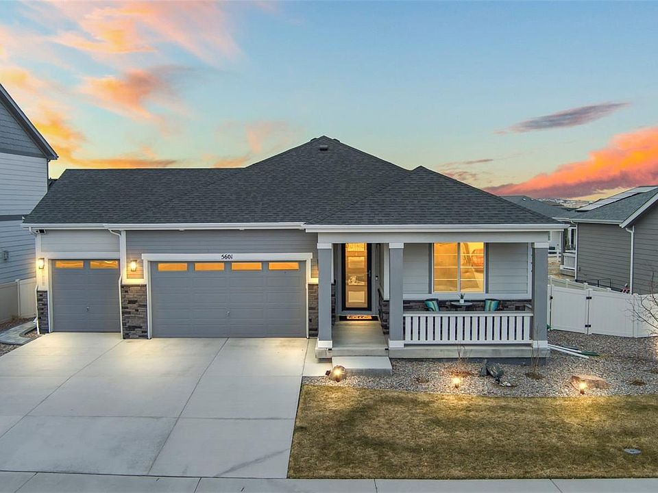 Amazing like new home in Stone Creek Ranch!backs to open space and has a peek-a-boo view! Gorgeous upgrades throughout the home! Wide plank flooring through the main living areas, 8 foot doors and three bedrooms on the main level for easy living! This home has a welcoming front porch and large entry area! The kitchen has gorgeous upgraded cabinets with pullouts in every lower cabinet and soft close doors! Under cabinet lighting with light rail, upgraded appliances including gas stove and hood! Beautiful back splash and large island with white granite and in absolutely incredible custom pantry! You are going to love cooking here! The private main level master retreat has upgraded fan, spacious spa like master bath and a huge closet! Main level laundry is easy access and has a sink and cabinets! Enjoy summer evenings on your huge 38' custom patio with step down to your fully landscaped yard and back to open space for privacy all year! Dog run and the most fun custom dog house you have ever seen! Shed included as well! The basement has 9' ceilings, brand new carpet, new paint and a full wet bar with fridge for entertaining! Two more bedrooms down stairs and a full bath with new flooring and cabinet! This home also has a whole house water filter, a fully finished and insulated three car garage with wall for shop area! Upgraded sound system throughout the home, permanent jelly type Christmas lighting in the gutters, landscape lighting, sidewalks and many many upgrades! This home has been lovingly maintained and it shows! Easy access to shopping and freeway! Radon mitigation system installed. Whole home maintenance free water conditioner. Walk to two near by parks! Great schools!