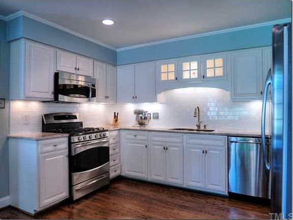 This home is a delight from beginning to end! Stately, all brick ranch with circle driveway, garage, bonus rm, completely renovated kitchen, and gorgeous hardwd floors! Renovated master bathrm! Sliding glass doors from fam rm to huge patio overlooking beautiful nature view and fenced backyard! It is common to see to deer and ducks! Convenient to N. Hills, Beltline, & Shelley Lake!