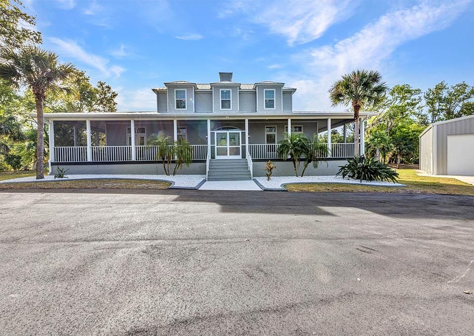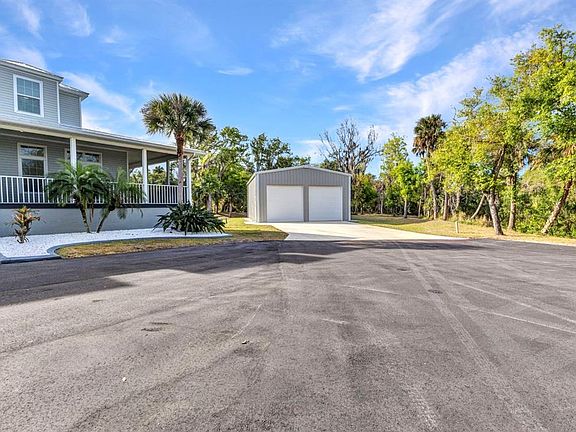 Seize the chance to own a magnificent Florida-style gulf-access, pool home, 2.8 acres on private Alligator Creek. This is your exclusive paradise! **CAR ENTHUSIASTS! This luxury property boasts a 6+ car garage/steel building. The 32x46 steel workshop, recently added is a stellar place for your workshop, enough room for car lifts, toys, and even RVs. Store your most prized collectible cars, recreational vehicles, workshop equipment, or anything you can imagine with peace of mind. This huge space has ample storage, lighting, electrical, and even an office built inside! The rear garage door to the front door connects your driveway to the additional covered parking in the rear of the property! Imagine relaxing on your wraparound front porch, surrounded by majestic oak trees in the highly sought-after Punta Gorda area. This remarkable residence boasts nearly 2,800 square feet of luxurious living space and a total of 5,433 square feet, providing ample room for you and your loved ones. Not to mention, it is like living on your own private island with three sides of your land surrounded by water! The main home features three spacious bedrooms plus a dedicated office, making it perfect for both family living and entertaining. The inviting family room with a warm inviting fireplace, ideal for hosting memorable gatherings. Picture yourself in a large kitchen that showcases an island, two sinks, and a commercial gas stove, all while enjoying breathtaking views of your stunning property. Among its many impressive attributes, this home includes a 500-gallon propane tank to power the tankless hot water heater, stove, and fireplace. Enjoy the convenience of a central vacuum system throughout, and retreat to the luxurious master suite, featuring a generous walk-in closet and a beautifully remodeled bath. With two newer air conditioning units and spray foam insulation, you’ll experience comfort year-round. As you step through the front door, you are greeted by a welcoming foyer. To your right, you'll find the expansive master bedroom and a private, magical en-suite bathroom. Continuing through the home, you’ll discover a cozy family room, a spacious kitchen, a dedicated office, a formal dining room, and a practical laundry room. Upstairs, two more guest bedrooms, a newly updated bathroom, and a charming sitting area or extra loft space await your guests. The outdoor space offers a fantastic entertaining area around the pool, with brand new decking just completed in 2025, accessing your wrap around porch from the back of the home all the way to the front of the home, and encompasses 2.8 acres of serene land along Alligator Creek, which flows directly to the Gulf. A kayak launch is perfectly nestled on the side yard, for your exploration afternoons! If you have any furry friends, they will have their own house to enjoy, already built in the backyard, with its own fenced-in area. And last but not least, the adorable treehouse, made with materials from the main home to match. What a great place to hide out, have an additional office space, she-shed, or a night under the stars. Don’t let this opportunity slip away, this property is unparalleled to anything you have yet to see!