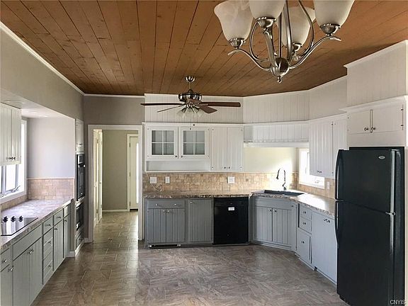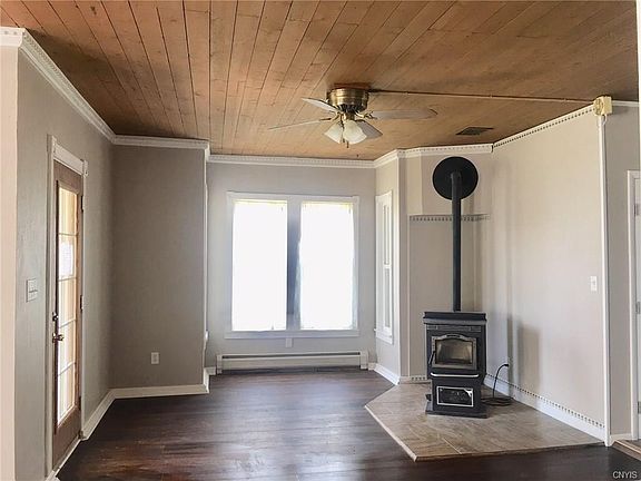 Nicely done home on quiet st. ready for new owners with many updates throughout the home including kitchen, bathrooms, flooring, heating system, hot water heater, some roofing. A large kitchen gives plenty of space for a table and even adding an island if desired. A large open living room boasts beautiful built ins and fireplace to keep things cozy in the cool winter months. An additional rooms serves currently as a bar area with patio doors that opens to a large deck all great for entertaining. A great open floor plan gives ample space for daily living and entertaining. The upstairs consists of three bedrooms and a bathroom, all good sized. Come take a look at this great village home all ready for you to make your home.