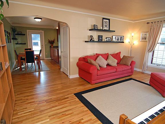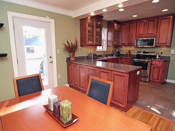 Immaculate 1948 home features open, updated eat-in kitchen, rec room w/ bar, & lovely fenced yard w/ deck & hot tub. Large, private master suite includes master bath w/ heated marble floors & luxurious shower. Brand new roof!