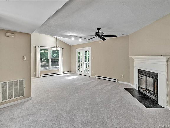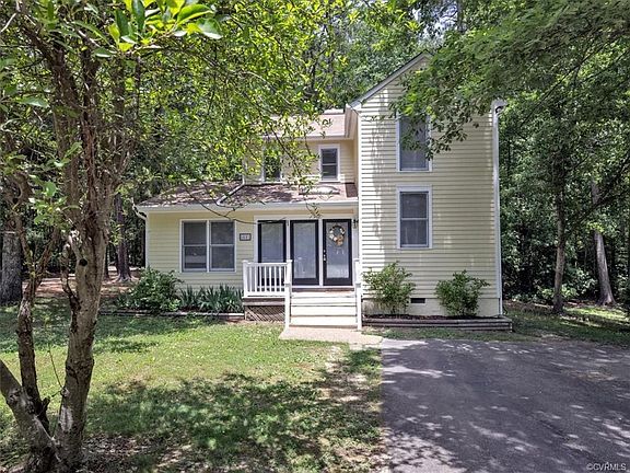 Charming Home Located in Woodlake with Optional First and Second Floor Master Bedrooms! Features include 3 bedrooms, 2 bathrooms, freshly painted interior and brand new carpet throughout. Large foyer with brick surround, family room with a wood burning fireplace opens to the dining area with cathedral ceiling and access to the huge deck. Kitchen with eat-in area and pantry, optional first and second floor master bedrooms with access to full bathrooms, ceiling fans, walk-in closets and updated lighting throughout. The huge deck overlooks the back yard with a detached storage shed, front porch with vinyl railings, paved driveway and located on a cul-de-sac lot. HVAC (2015), roof (2018), skylights (2018) and gutter guards (2020). Woodlake features a 1700 acre reservoir, outdoor and indoor pools, clubhouse, pavilion, playgrounds, basketball, volleyball, tennis and over 13 miles of walking trails! Award winning schools, conveniently located to St. Francis Medical Center, Rt 288, Powhite PKWY, shopping, restaurants and so much more!