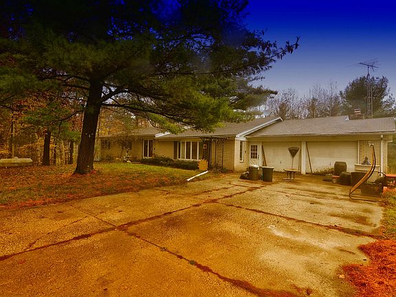 Great opportunity on 12 plus acres with a river running through the property. This 2800 sq ft ranch features: New Roof and fascia replaced Fed/2018, 3 fireplaces, extra large living room, 2 family rooms, 2 kitchens, formal dining room, 2 story atrium, 3 out-buildings with 6 extra garage bays, 1000 amp electric service to the property, One of the out building previously used for a fish and tacking company. 15,000 gallon indoor built-in pool. The home is in need of TLC throughout. Beautiful property. Motivated Seller. Will look at all offers.