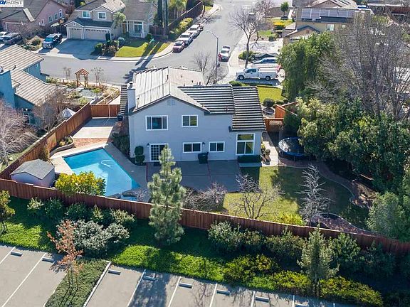 Spectacular house with sparkling pool, spa, large private lot with no rear neighbors, plus a beautiful remodeled 4 bedroom home. Remodeled kitchen granite counters and Thermador oven and stove. 3 ovens total. Remodeled family room with hardwood floors. Prepaid solar lease for low PG&E bills. Solar heat for pool. Four bedrooms upstairs with large master suite. 3 full baths. 3 car garage. Super huge lot with shed, room for boat. Central vac too. Close to schools and freeway for easy access.