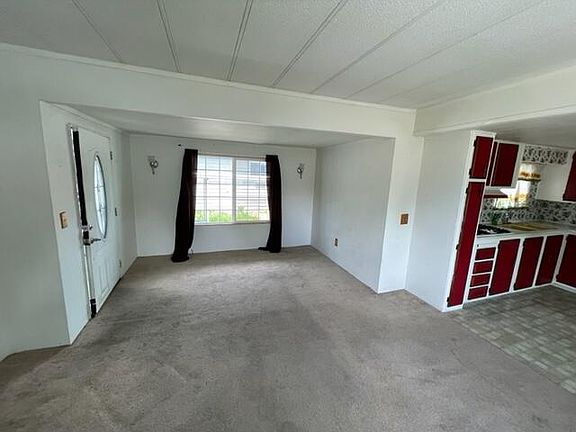 Cozy 2 bedroom, 1 bathroom manufactured home. The 55+ park that this home is situated in is quaint and quiet, with only 12 units. Space rent is $425. and includes water, sewer and garbage. The home has new furnace and stove. There is a detached carport and storage shed. CASH ONLY due to age.