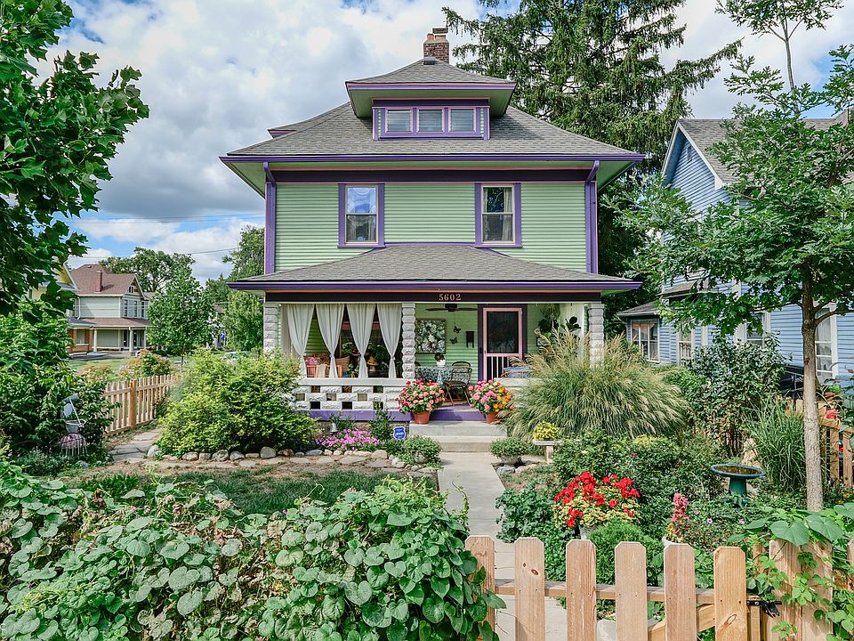Cheerful, colorful, and full of historic charm, this Irvington home is a true standout! The lushly landscaped front yard turns heads and sets a storybook scene as you make your way to the covered front porch - an ideal place to relax and enjoy the prime neighborhood setting. Step into the welcoming entryway with eyecatching woodwork and a split staircase leading both upstairs and to the kitchen. The main floor unfolds into a cozy living room anchored by a fireplace, a dining room with gorgeous unpainted built-ins, and a bright, personality-packed kitchen. A handy half bath and a mudroom with main-floor laundry round out the main floor. Upstairs, you'll find three comfortable bedrooms and a spacious full bath with classic finishes and a walk-in shower. The finished attic offers even more flexibility - perfect for a guest suite, lounging, or creative space - with its own full bathroom and storage. The property also features a 2-car garage, and the full fence, paved patio, exterior paint, and roof are all newer. And the best part? You're in the heart of Irvington's historic district, just a short stroll from shops, dining, and everything this beloved neighborhood has to offer. With just the right blend of whimsy, character, and updates, this home is ready for its new stewards.