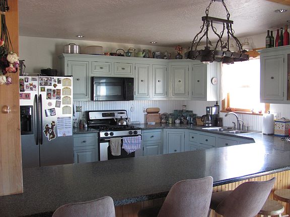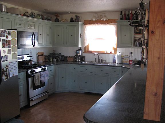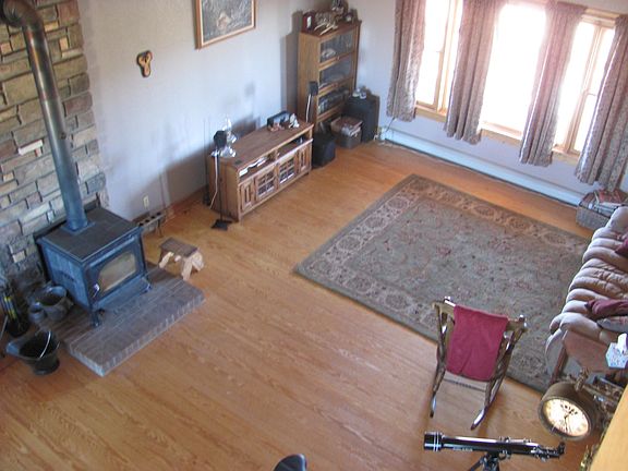 Three-story house with 5 bedrooms and 3 full bathrooms. this home has a large kitchen with peninsula that opens into the dining room/living room area with vaulted ceilings . wood stove in the living room . Additional heat provided by hydronic baseboard heat. Main floor has living room/dining room, kitchen, two bedrooms, large bath and laundry room. Upstairs is the The master suite and a loft over looking living room. The walk -out basement has 2 more bedrooms a family room and pellet stove.