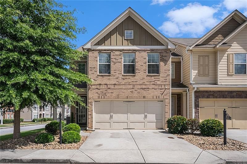 Stop looking, 5602 Radford Loop is the one! This beautiful and spacious end-unit townhome in the coveted Renaissance at South Park community is just what you need. Updated brick-front residence boasts 2,016 square feet of luxurious living space with 3 bedrooms and 3 baths. Immaculate hardwood floors meet you at the first step inside and throughout the main level, where the open concept living area is perfect for entertaining. The updated kitchen invites you in with gorgeous black and white granite countertops, a large island and bold black cabinets with gold accents, and top-of-the-line stainless steel appliances. Upstairs, a spacious loft offering an additional living space, ideal for a family room, home office, or media center. The primary suite is a true retreat, bathed in natural sunlight and offering ample space to relax, with an en-suite bathroom featuring a soaking tub, separate shower, and double vanity for a spa-like experience. Enjoy the privacy of a fenced-in backyard larger than most because of the corner lot, perfect for outdoor gatherings and relaxation. Conveniently located near the interstate, this home offers easy access to all that Atlanta has to offer.
