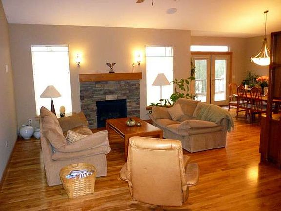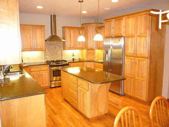 Creme de la Creme thru-out! Custom Paras built, fully finished daylite rancher at Aspen Creek. Gorgeous kitchen has stylestone counters & stainless appliances. Vaulted ceilings. Great room w/gas fireplace. Beautiful birch floors & maple stairs. French doors to den/office. Walk-out family room w/pellet stove. All 3 baths have granite counters, tile floors. Enjoy trex deck views & natural gas BBQ (included). Finished 3 car garage w/hot water! Nothing compares. You'll love this home!
