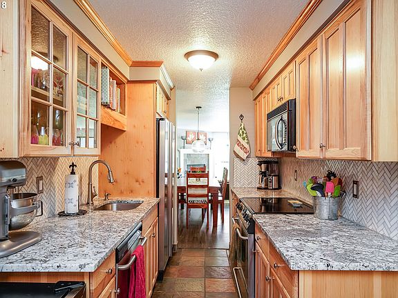 Situated along the Willamette River & newly updated incld kitchen w/ granite counters,designer backsplash,stone tile floors,stainless appliances & new fixtures.Open floor plan to enjoy family & friends from every room.Nestle up to cozy fire or relax on the covered patio & manicured lawn.New laminate wood floors.Master has double closet w/ organizers & updated bath.French doors to 2nd bed/den.2017 furnace/AC.Parking.Great OHSU commute.