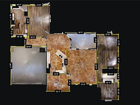 • Interior Features: Ceiling Fans(s), High Ceiling(s), Master Bedroom Downstairs, Split Bedroom, Walk-In Closet(s), Open Floorplan, Solid Surface Counters, Solid Wood Cabinets, Eating Space In Kitchen, Thermostat