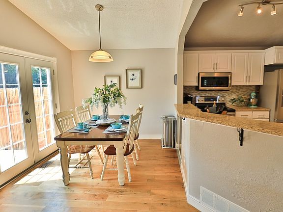 Looking for your opportunity to jump into the housing market? This home has a unique layout, fantastic outdoor spaces, and trendy custom touches throughout. Ranch style home on a corner lot under the shade of a big pine tree. Step onto perfectly rustic wide-plank hardwood floors and tall ceilings. Gray paint and white trim offer a great starting-off point for your decorating! Open floor plan of family room, dining and kitchen ground the middle of the home. SS appliances, white cabinets, glass mosaic backsplash and high-counter bar deck off the kitchen. Laundry area just off the kitchen as you lead to the garage gives great ease to laundry duties. Master suite is on one end of the home while 2 spare bedrooms and a full bath are on the other. Custom reclaimed sliding barn door gives privacy to the master bath while adding decor to the space. Access the backyard from 2 different rooms. Decks, patios, pond and firepit are all treats to be found with options during the day to shade from the hot sun. Built-in benches add to the charm. Close to parks, shopping and highway access to Denver. This home will go quickly as it's priced right!