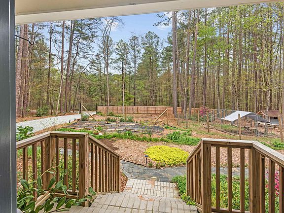 This weekend's Easter egg hunt is a double bonus: find the house & yard of your dreams & Easter eggs from chickens hidden in your own backyard. This garden paradise has visitors saying "oh my gosh!" It's bursting w/colorful plants, flowering trees, water features, abundant stone work & other surprises to bring joy to this season & throughout the year. Backyard features also include a greenhouse, large shed, self-feeding goldfish pond & deck overlooking all of it. Entire property enclosed by a deer fence & gated driveway. Updates & features: new roof (2018), 44 solar panels (2021), whole house water purification system, sealed crawlspace/dehumidifier (2021), hookup for whole house generator, remodeled primary bedroom & kitchen, remarkable storage space in garage. Enormous front yard gardens include a strawberry patch, potato, garlic, onion & asparagus plantings. The large pond at the end of the driveway enhances the serenity of this spectacular hide-a-way. Close to shopping, restaurants, UNC and The Streets at Southpoint.