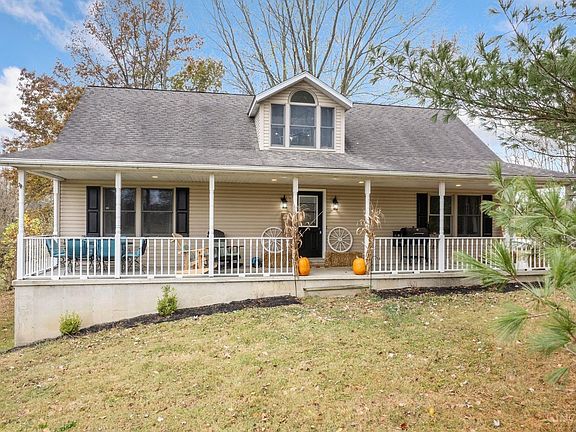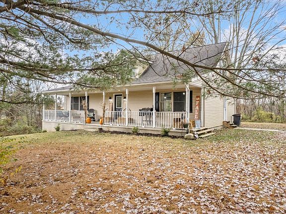 Enjoy the peace & quiet of this mini farm offering 5 acres, cozy Cape-Cod style home, 3 car detached garage and barn. Home has been completely remodeled in last 2 years & offers 3 bedrooms, 2.5 bathrooms, walk-in pantry, full walk-out basement, large eat-in kitchen & beautiful views from every window. Home sits approx 400 ft back off of road. This property has it all!