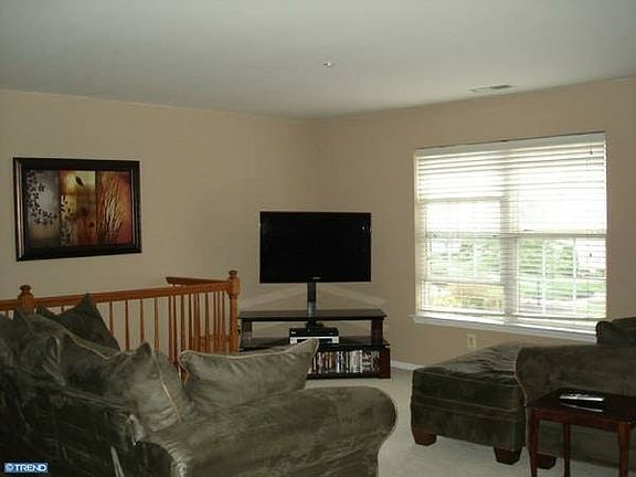 Beautifully maintained 2br 1.5ba townhouse w 1 car garage. BRAND NEW CARPET throughout. Living room, dining room, eat-n kitchen w stainless steel appliances, covered balcony, main floor laundry. Oversized master bedroom with cathedral ceilings, dressing area, walk-in closet. Beautifully remodeled bath with soak-in tub and hardwood floors. Large second bedroom also has walk-in closet. Upstairs TV. The Riverfront at Palmyra is situated on the banks of the Delaware River, minutes from I-95. Located near routes 73, 130, 38, and I-295. Access to fitness center and tennis courts included. Call or email. Tenant responsible for electric, gas, and water