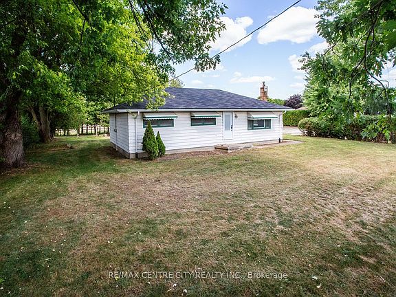 Don't Miss!! Minutes East of London! Enjoy country living with city convenience on this large .795-acre lot with 150 feet of frontage and beautiful views. This charming bungalow (1059 sqft MPAC) offers a practical layout with 3 bedrooms, a spacious country kitchen with walk-out to the rear deck, a newer 4-pc bath, forced-air gas heat, and a full basement with ample storage. Recent updates include some newer windows, doors, and a new roof (2022). As a bonus, the property includes a detached workshop/storage building, ideal for personal hobbies, tools, or recreational equipment. A long private driveway set back from the road provides plenty of parking and privacy. Quick possession available make this country property your next home! All measurements approximate.