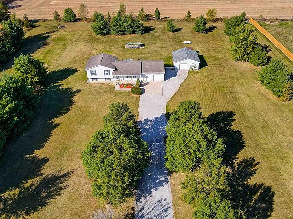 Seller has accepted an offer contingent on inspection and appraisal. We rolled the dice on a full price offer from a buyer who thought their home was sold to the Casino and would be closed at the end of February... no casino = no buyer. So, this could be your lucky day. Welcome to country living on nearly 4 acres! As you drive down the charming tree-lined path, you’ll be greeted by a serene setting and a spacious tri-level home with the bonus of a second basement. The full front porch and large back deck provide ample space for outdoor relaxation and gatherings. Step inside to a cozy foyer featuring a double closet, bench, cubbies, and hooks. The main living area is bright and inviting, thanks to the triple window that fills the space with natural light. The dining area is equally sunny, with a sliding door that opens to the deck. Adjacent to the dining room is a spacious kitchen equipped with brand-new appliances—all included! Just half a flight upstairs, the owner's ensuite offers a full bath with a tub/shower combo. You'll also find two additional bedrooms and another full bathroom on this level. Half a flight down from the main floor, enjoy a second living area with a fireplace, full bath, and laundry room. A few more steps lead to the unfinished second basement, offering plenty of potential for customization. The attached two-car garage is located just off the kitchen, while outside, the back deck overlooks an above-ground pool that can be removed if desired. On the right side of the property, there’s an oversized detached two-car garage with a new roof overlay, along with a shed for extra storage. This home offers plenty of space, natural beauty, and opportunities for you to make it your own!